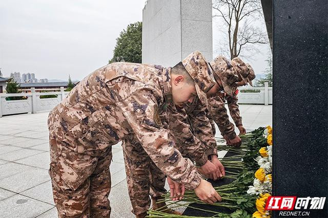 随后,全体人员手持鲜花,迈着缓慢而坚定的步伐,依次将手中的鲜花放在纪念碑前。一朵朵鲜花承载着对遇难同胞的无尽哀思,寄托着对革命先烈的崇高敬意,更传递着军民同心守护和平、共筑国防的共同心愿。